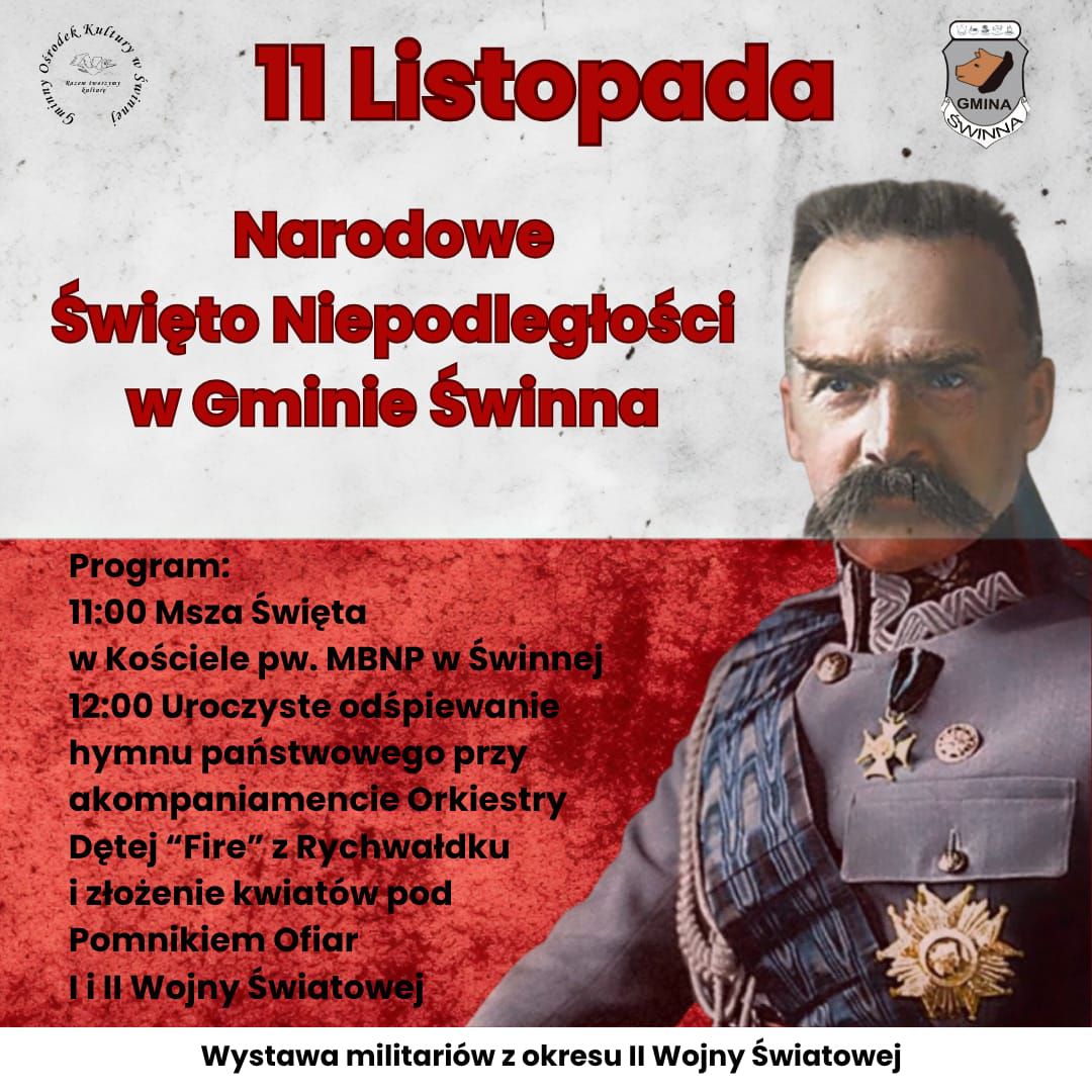 Gmina Świnna serdecznie zaprasza do wspólnego świętowania Narodowego Święta Niepodległości 11 Listopada. W tym szczególnym dniu odbędą się uroczystości mające na celu upamiętnienie wydarzeń historycznych i złożenie hołdu tym, którzy walczyli o wolność Ojczyzny.
